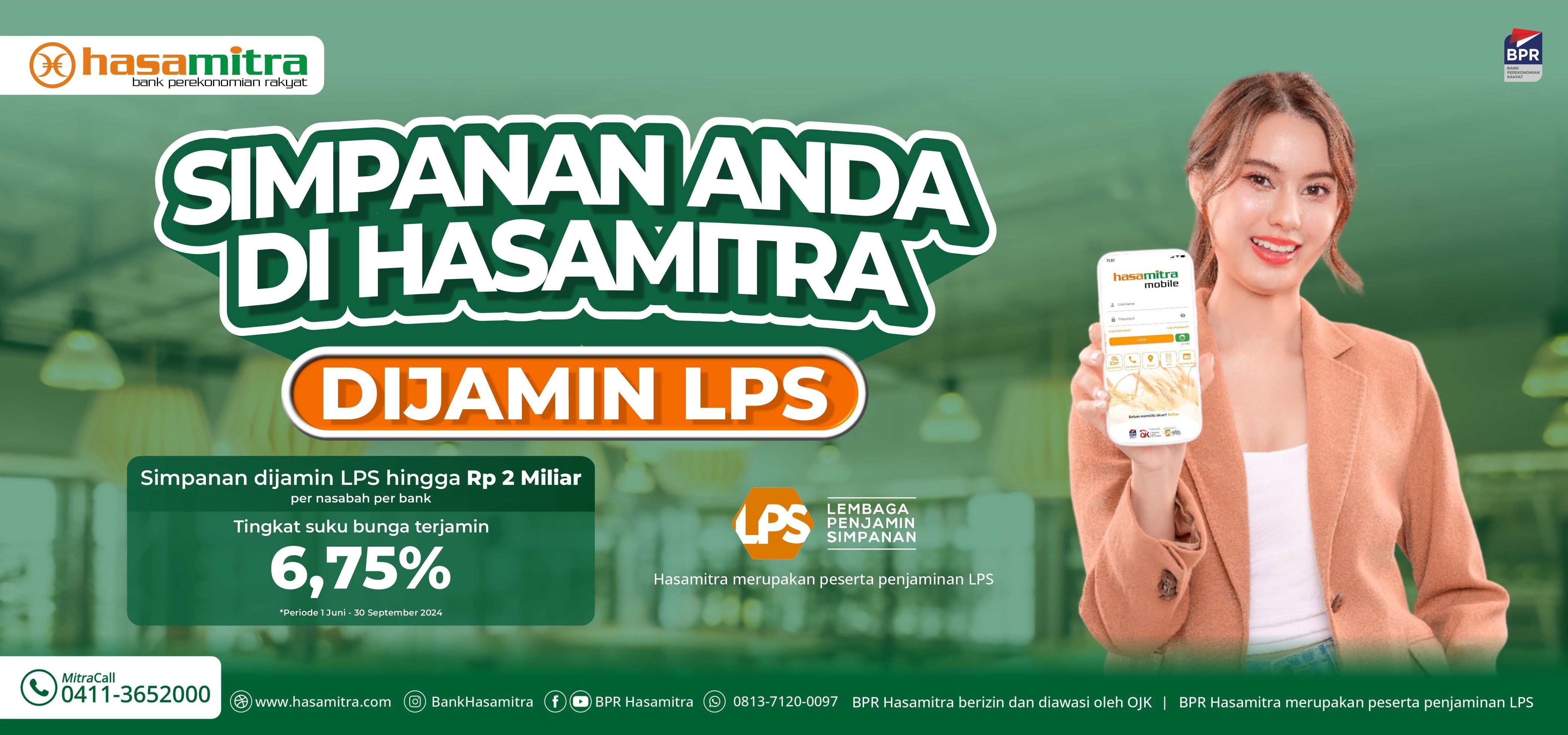BPR Hasamitra berizin dan diawasi oleh Otoritas Jasa Keuangan (OJK) dan merupakan peserta penjaminan Lembaga Penjamin Simpanan (LPS). Nilai simpanan maksimum yang dijamin oleh LPS sebesar Rp 2 Miliar, dengan tingkat bunga penjaminan maksimum sebesar 6.75% untuk rupiah sesuai ketentuan yang berlaku.